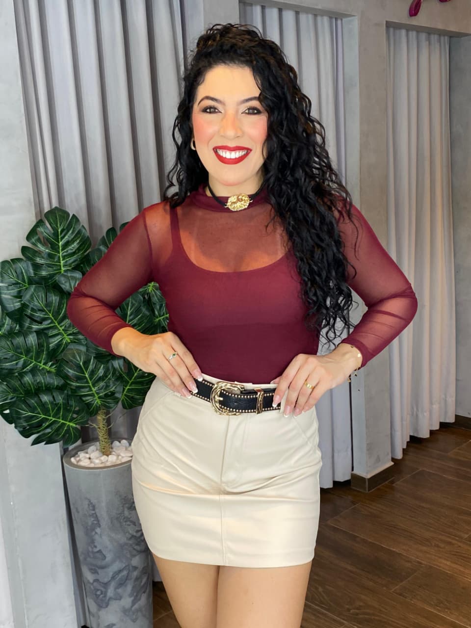 Ideal para usar com tops, lingeries ou sobreposições, ele combina facilmente com jeans, saias ou peças de alfaiataria — do casual ao look noturno com muita elegância.