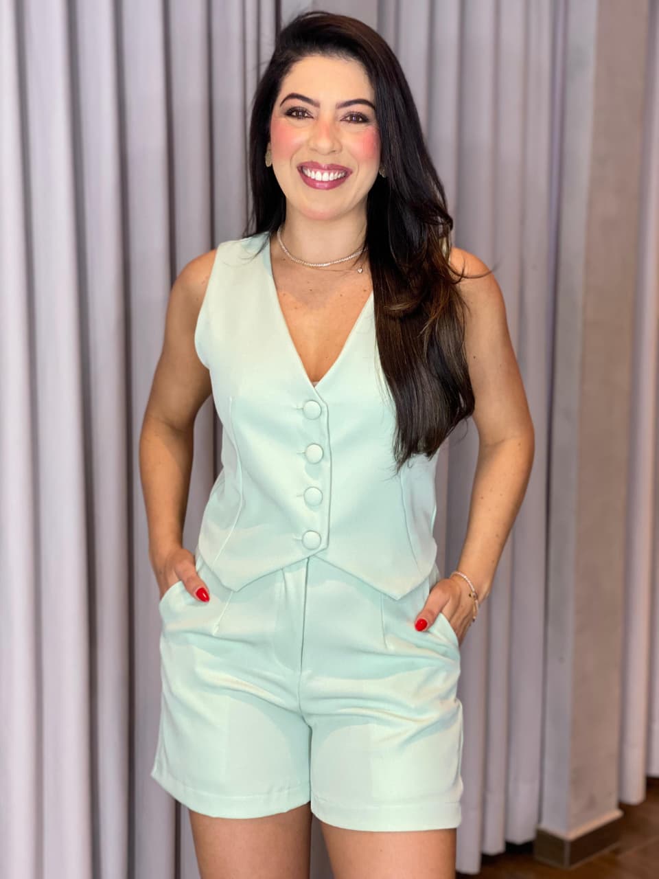 O conjunto colete e short alfaiataria garante sofisticação contemporânea. Composto por short de cintura alta e colete acinturado, com corte impecável e tecido de alta qualidade, essa peça une conforto e estilo em uma combinação versátil para diversas ocasiões.