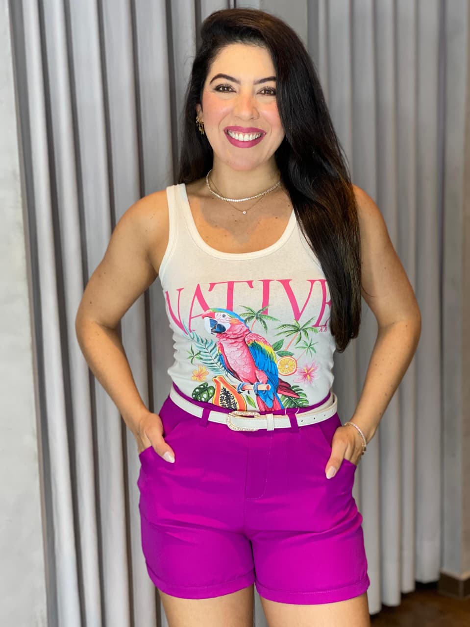 A estampa adiciona um toque moderno e despojado, perfeita para quem gosta de se destacar com autenticidade. Possui modelagem ajustada ao corpo, alças médias e acabamento reforçado, garantindo durabilidade e liberdade de movimentos.