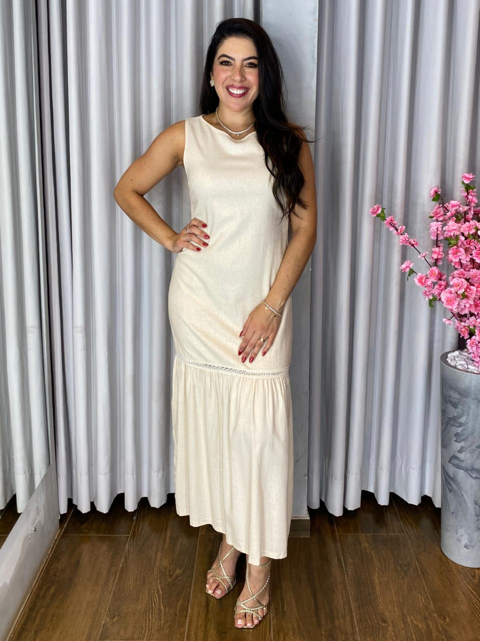 O vestido longuete linho é a escolha perfeita para quem busca elegância com leveza e sofisticação. Confeccionado em linho, tecido nobre e respirável.